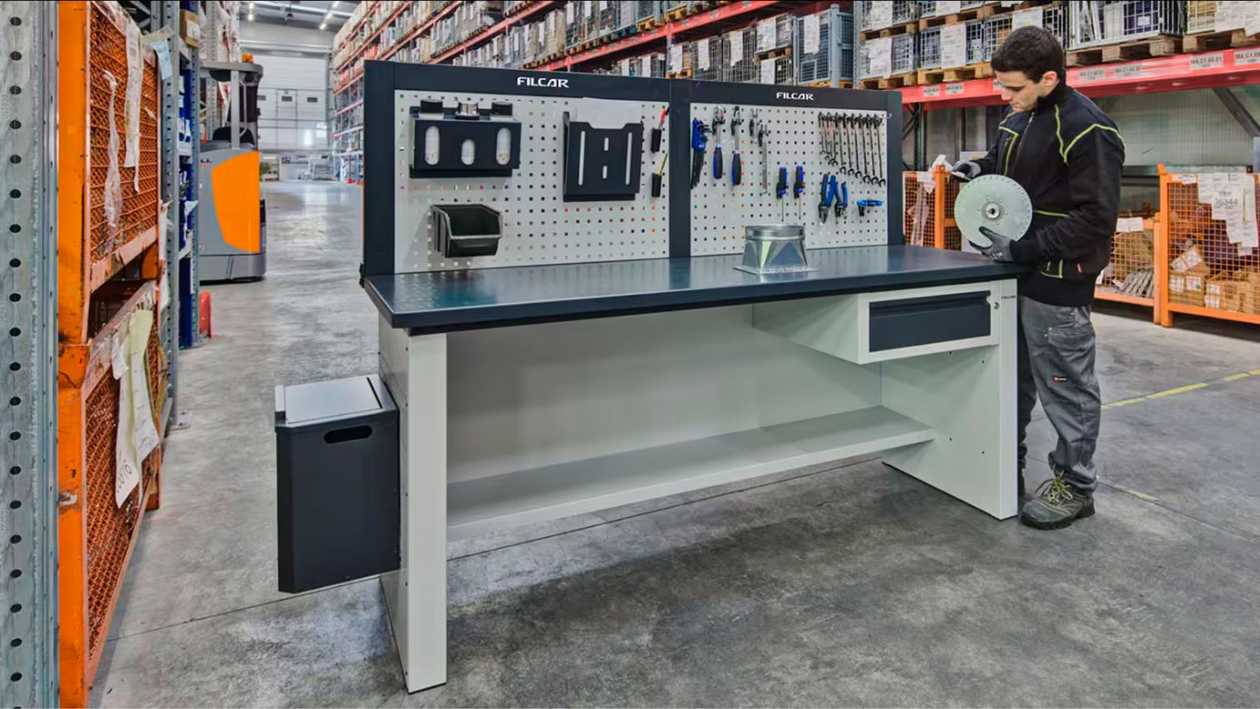MONO is the modular and configurable workbench that transforms a workshop worktop into a customised professional workstation. Thanks to its intelligent and compact design, it easily adapts to the environment and production requirements, offering functionality and performance in a small footprint.