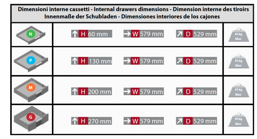 • In design modern drawer, with at total extraction system to make the most of all available spaces.