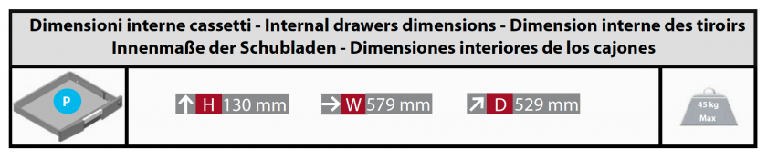 • Innovative design drawer, with total extraction system in order to allow to take advantage of the available space.