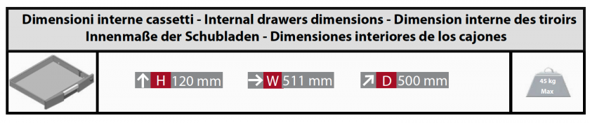 • Innovative design drawer, with total extraction system in order to allow to take advantage of the available space.