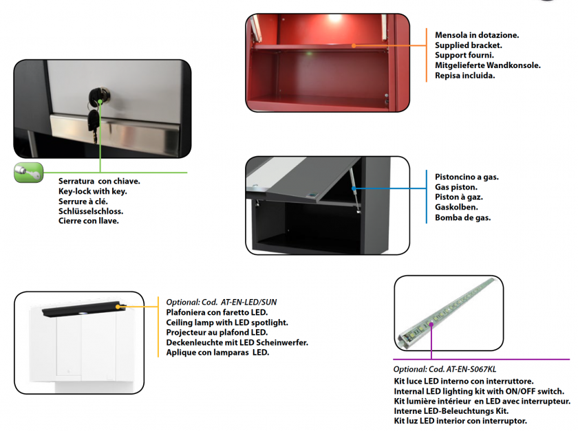 • Kit luz LED con interruptor para la illuminacion de los modulos de-bajo del colgante (opcional).